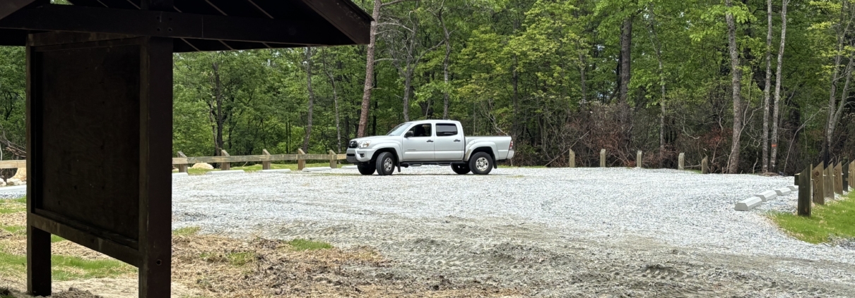 The parking lot on Persimmon Ridge Road was completed on May 6, after delays caused by rain, forest fires, and issues related to drilling through rock.